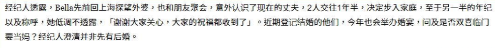 被质疑是奉子受室如斯转眼的佳音,也未免孳生出了一些疑心声,有东谈主质疑Bella是奉子受室,才会这样转眼结婚的。