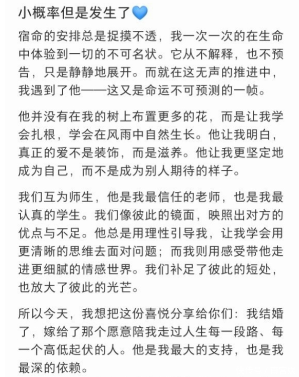 菠菜十大平台网向全全国晓喻佳音晓喻佳音的长文当中,Bella直言这齐是宿命最佳的安排,恰是因为碰见了现任,她智力得以成长为更好的我方,并直言说我方与丈夫的关系,更像本分与学生。
